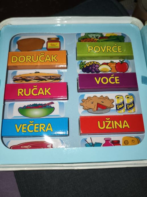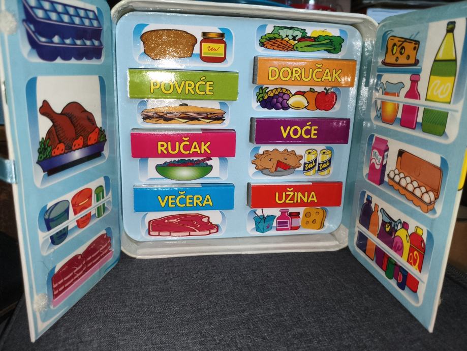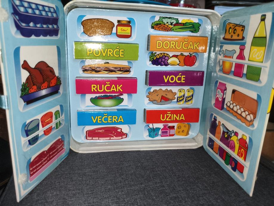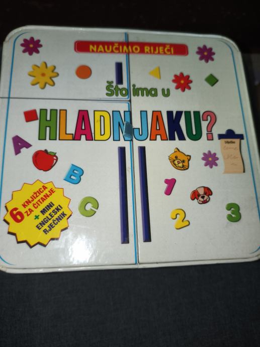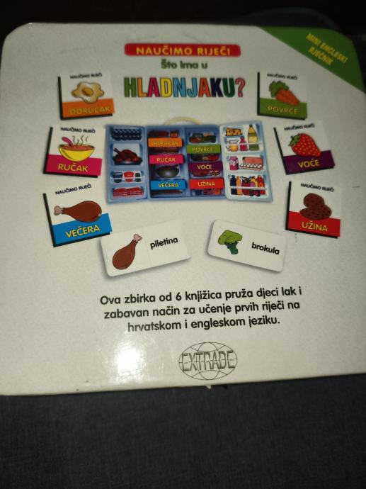 Kutija sa 6 malih englesko/hrvatskih knjižica sa opisom hrane u frižideru. Odličan uvod u engleski jezik. Neoštećeno, ispravno. Preuzimanje u Rijeci ili plaćanje preko payprotecta. Na slikama je predmet koji dobivate