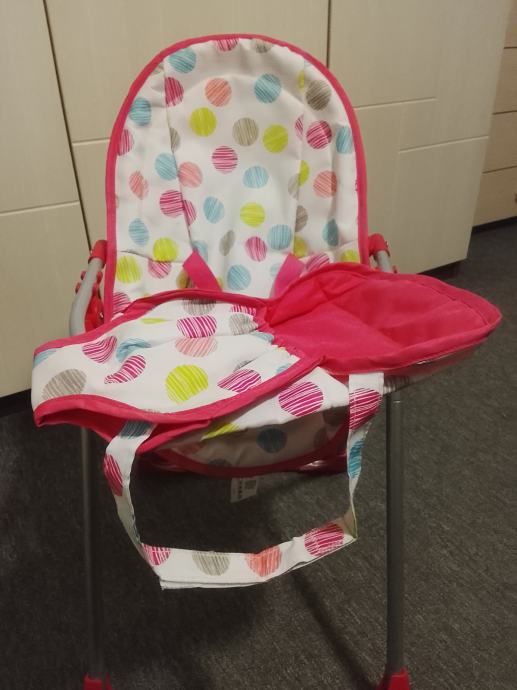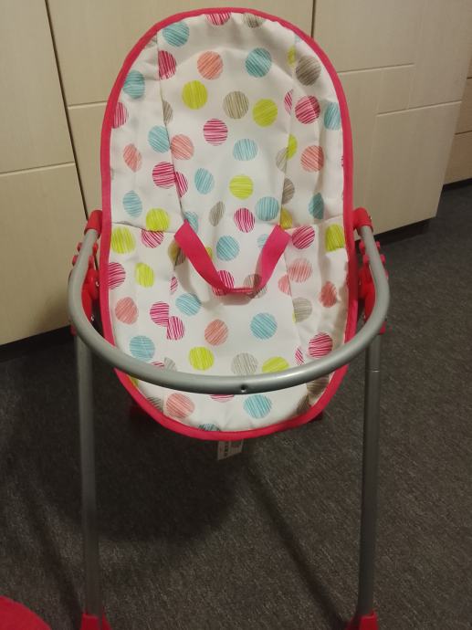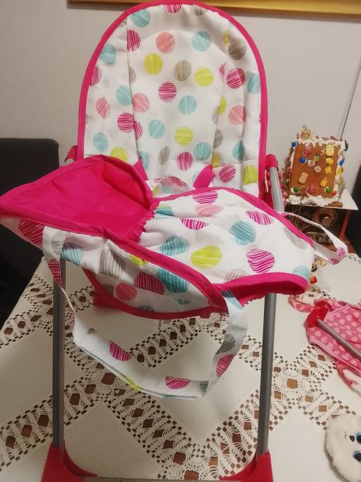 Malo korištena stolica za hranjenje i ljuljačka 2u1.Kupljeno u Mulleru.U kompletu se nalazi i klokanica i torta za bebine stvari.