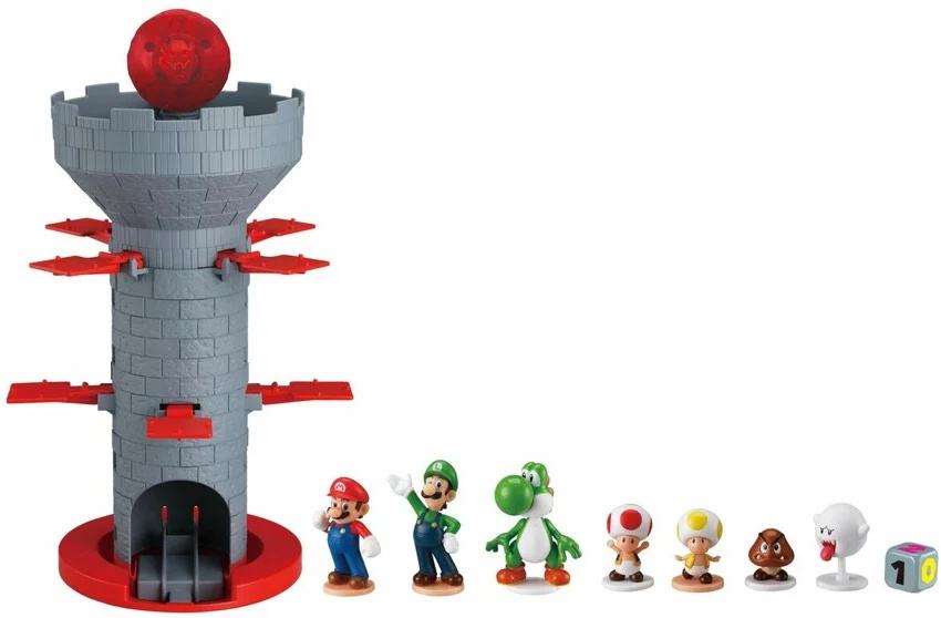 Intense balance game for the whole family! Balance all your favorite characters from the Super Mario universe and see who first tilts the tower.The Super Mario Balance game guarantees many hours of lively fun for the whole family, both young and old. In the game you have to balance the number of figures on the tower that the dice indicate. But be careful - the tower quickly begins to react to your movement. You have to try to put the figures on the tower without them falling down. A game set contains enough figures for up to four people to participate in the game.The game is also ideal for collectors due to the link system. All three balancing games can be combined with each other and put together to become one big stage, so even more skill and balance is required. In addition, all the figures that you collect can be used as characters in all Super Mario board games from EPOCH.Super Mario Balance GameBlow Up! Shaky TowerRecommended age: 4+Number of players: 2-4