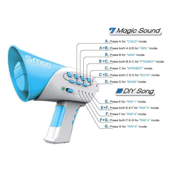 Ova lagana, prenosiva dječja igračka za promjenu glasa je pravi hit na kostimiranim zabavama i općenito na dječjim proslavama. Djeca je obožavaju zbog šaljivog karaktera igračke (promjena izvornog glasa) te je savršen rekvizit za lude zabave s prijateljima. Igračka može poslužiti i za skladanje vlastite skladbe iz ponuđenih ritmova i kao megafon.