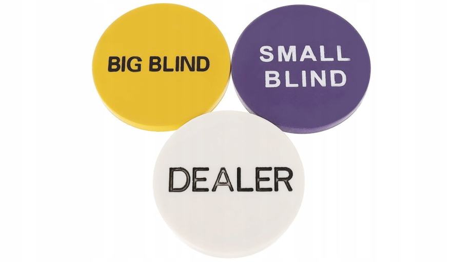 Funkcionalni tokeni- Komplet uključuje skup od 3 funkcionalnih čipova koji vam omogućuju održavanje reda i narudžbe u igri. Prodavač je token razdjelnika i tijekom igre se kreće u smjeru kazaljke na satu. Mala veza označava prvog igrača koji sjedi s razdjelnikom. Big Blind ukazuje na drugi igrač koji sjedi iza razdjelnika.