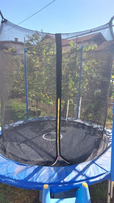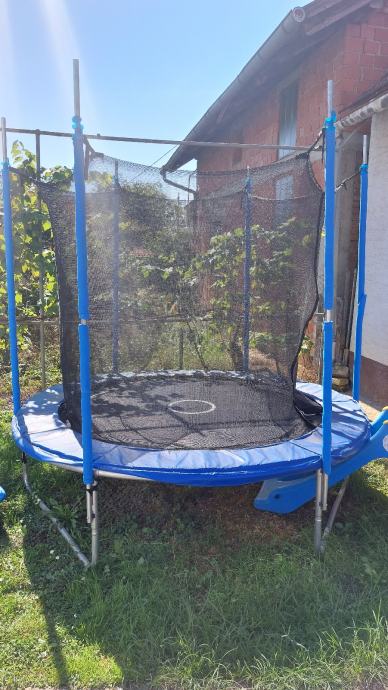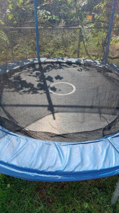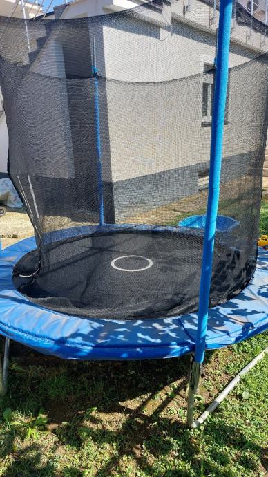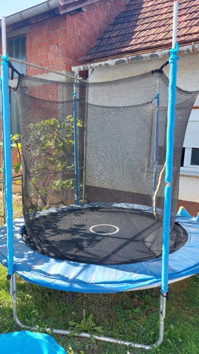 Trampolin u dobrom stanju (za iskoristiti!!) Promjer 2,45m (skakaća mreža promjera 2m). Visina od poda 2,45m, visina zaštitne mreže 1,7m.