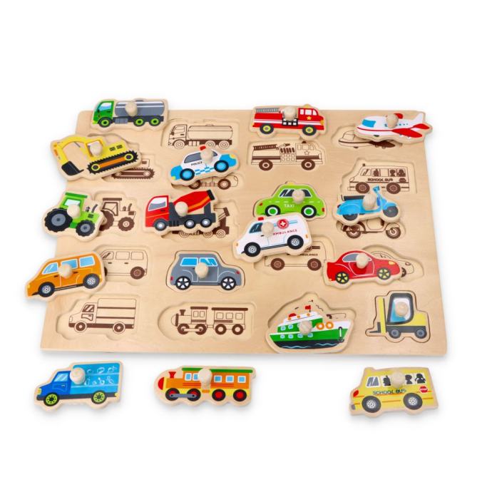 Sve je od drveta: baza je prirodno drvo, a vozila su lakirana. Radi lakšeg snalaženja, konture vozila ispisane su na mjestima gdje se vozila nalaze.