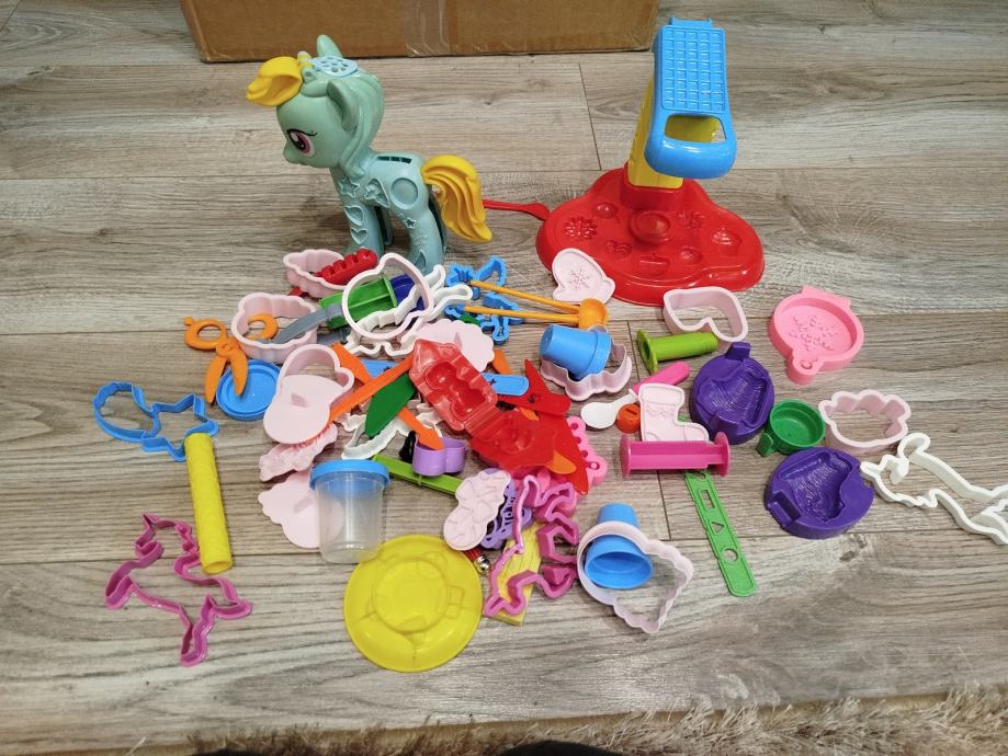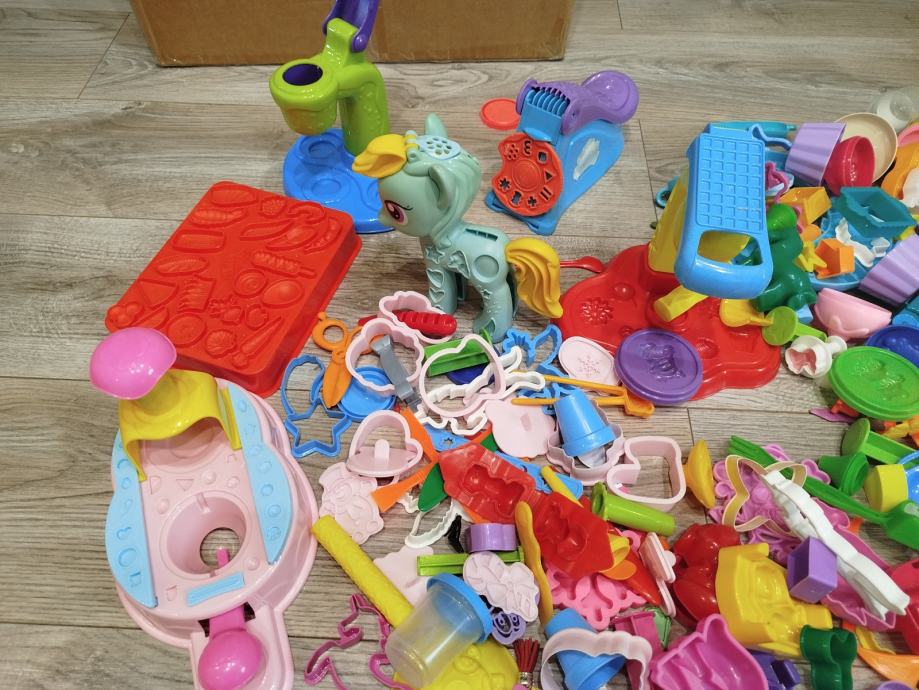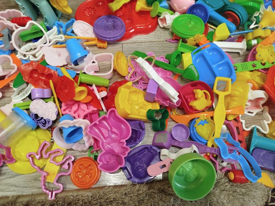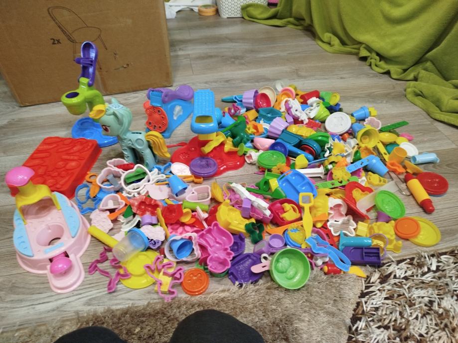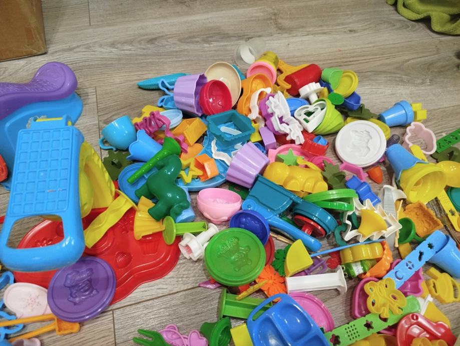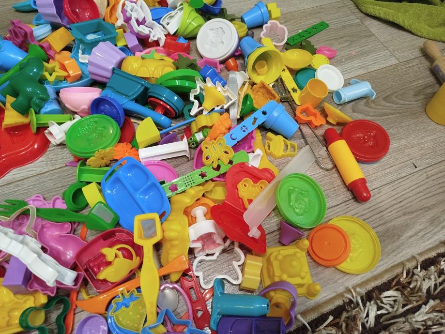 Prodajem veliki set za plastelin s jako puno dodataka – modlice, alati, aparati za oblikovanje, valjci i razni dijelovi za igru.