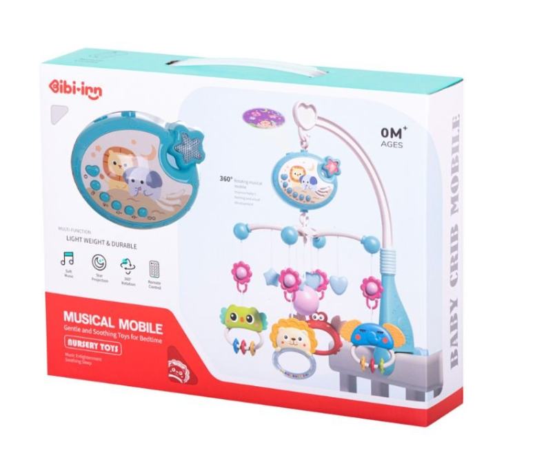 Vrtuljak za krevetić s projektorom i daljinskim upravljačem plavi