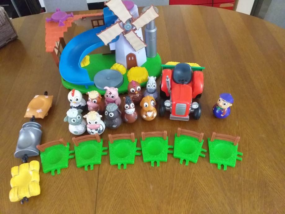 Prodajem cijeli komplet Weebledown farme. Set sadrži štalu, traktor, 3 vozila, 6 podložaka i svih 11 figurica. Sve je jako dobro očuvano i neoštećeno.
