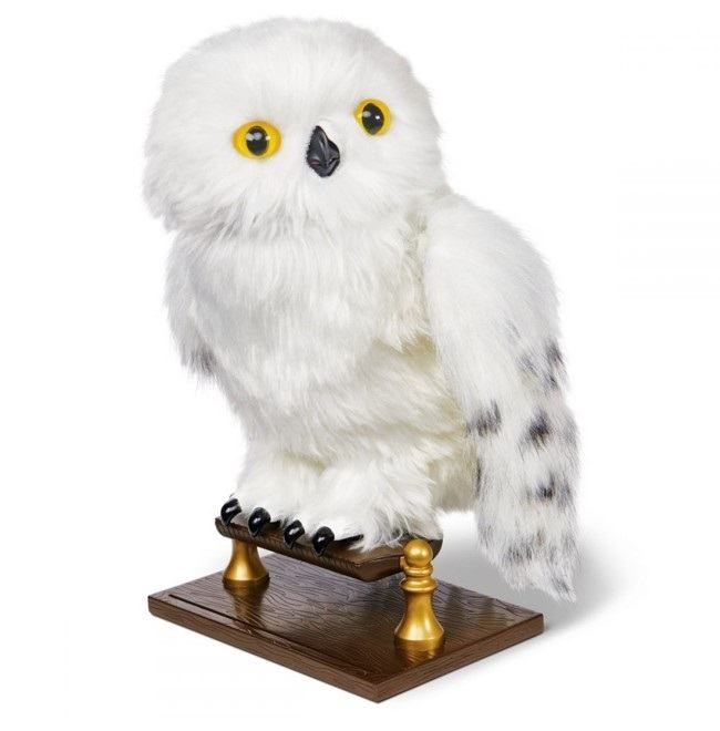 Recreate your favorite Harry Potter scenes with the Wizarding World Enchanting Hedwig! Featuring over 15 realistic sounds and movements and super soft plush material, Enchanting Hedwig brings the iconic Harry Potter owl to life. Remove Hedwig from her perch and discover all of her magical features. Hedwig loves to be pet! With “ruffle detection,” she can sense which way you are petting her. For loving chirps and head movements, pet her from front to back – she doesn’t like having her feathers ruffled backwards and will let you know how she feels about it! Place your finger in her beak and she’ll playfully nibble on it when she’s happy! Enchanting Hedwig also recognizes your tone of voice. When you speak soft and gently, she’ll respond with a hoot to show you that she is listening. If you speak too loudly, she’ll respond with some loud sounds of her own! Set Hedwig back on her perch and write a special message to a friend. Slide your note into the Hogwarts envelope and help Hedwig deliver it! She holds the envelope in her mouth and will only happily release it to the right person with a secret interactive code – stroke her head three times and Hedwig will let go of the envelope! Pet Hedwig and comb her to continue to keep her happy. Then, deliver a new message and play again and again! With so many exciting features, this 9-inch Enchanting Hedwig owl toy will inspire your imagination through fun and exciting pretend play. This interactive Hedwig plush owl is the perfect Harry Potter gift for ages 5 and up. Bring home your very own Wizarding World Enchanting Hedwig and experience the magic of Harry Potter!