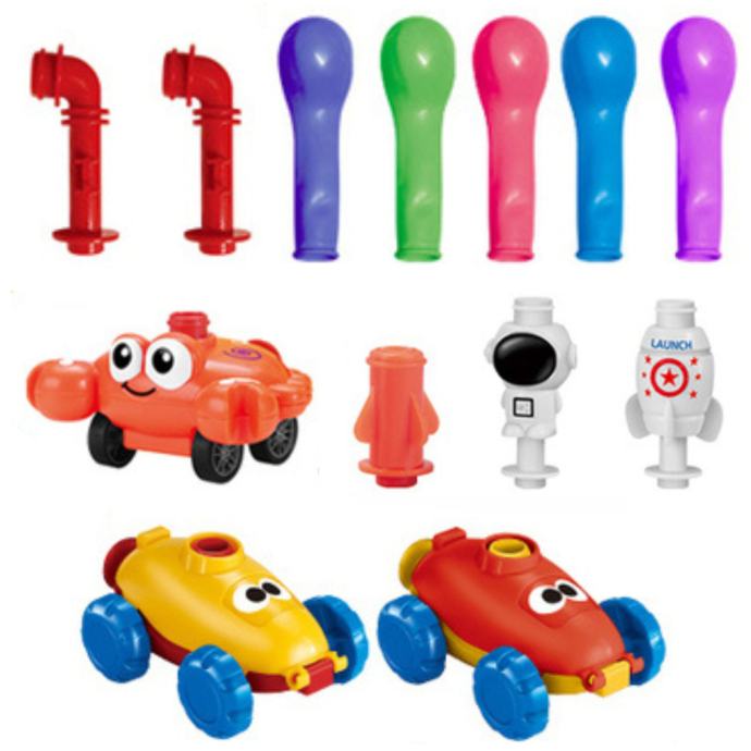 WOOPIE bacač balona je moderna igračka koja donosi mnogo radosti djeci i njihovim roditeljima! Pokretač balona radi na vrlo jednostavan način. Svi elementi garniture izrađeni su s pažnjom na svaki detalj . Izrađen od visokokvalitetne, izdržljive plastike. Igranje s aerodinamičkim setom uključuje napuhavanje balona pumpom i promatranje kako baloni povezani s autićima lete , dobivajući brzinu zahvaljujući zraku iz napuhanog balona. Set je edukativan jer uvodi dijete u svijet znanosti. Autiće s balonima pokreće zrak, što djeci pokazuje zakone fizike. Igračka ne zahtijeva baterije niti drugu električnu energiju.