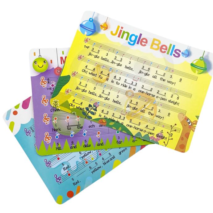 - set uključuje 3 dvostrane kartice s notnim zapisima popularnih pjesama,
