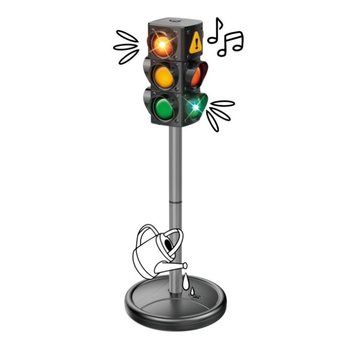 Pretvorite svoj vrt ili dječju sobu u uzbudljivo prometno vježbalište! Semafor na baterije automatski mijenja faze svakih 34 sekunde ili ga možete upravljati ručno – savršeno za prikazivanje različitih prometnih situacija. Osim svjetlosnih signala za pješake i vozače, za dodatni doživljaj brine i ugrađena zvučna funkcija koja potiče uključivu igru i angažira sva osjetila.