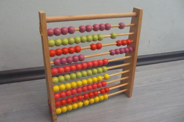 Drveno računalo s kuglicama za učenje matematike.
