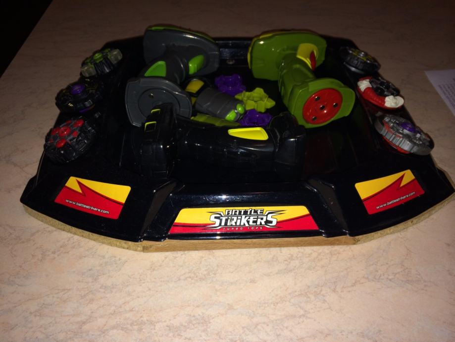 Turbo Launcher na baterije je upravljač sličan joysticku koji držiš u ruci, a pristaju u lijevu i desnu ruku. 'Striker' - zvrk - pričvršćuje se na donji dio dijela za lansiranje Battle Strikera, a u bitku se lansira pri brzini od preko 6.000 okretaja u minuti. Vrlo precizan Upravljač koji radi na dodir prsta, a pokreću ga magneti, omogućava igraču da u bitci upravlja 'Strikerom' koji može skakati, izmicati se ili kretati. Cilj igre Battle Strikers jest izbaciti protivničkog Strikera iz igre koristeći se silom magnetizma. Bitka se može voditi na bilo kojoj površini, bilo gdje.