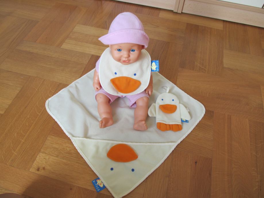 Beba ćelavica s pripadajućom odjećom , partiklom ,ručnikom za kupanje i malom patkicom za kupanje. 70 kuna.