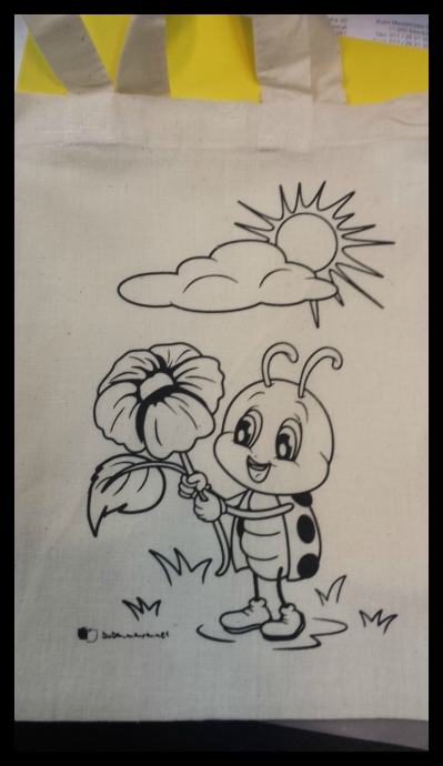 Zamislite da imate torbu kakvu nitko na planeti nema? Platnena vrećica, slatka i velika 23x26 cm s otiskom bubamare, ali čarolija nastaje kad je obojate bojicama po svojoj želji.