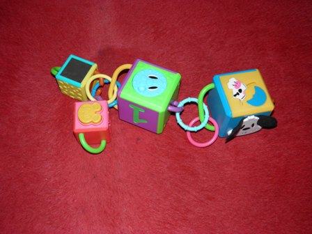 Kocke koje mogu biti zasebne i mogu se spjiti. Imaju ogledalce, i razne teksture za prstiće, vodoravne crte, sat, uši od psića itd. Ukoliko uzimate više svari, ja plaćam poštarinu.