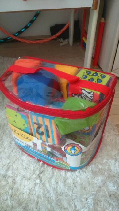 Tekstilne kocke za visestruku primjenu, od slaganja struktura do spajanja slika, prati dijete kroz vise dobnih grupa, za ucenje pojmova i primjena te promjena. Super didakticka igracka. kao nova.