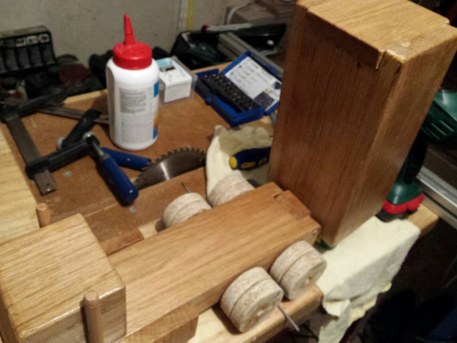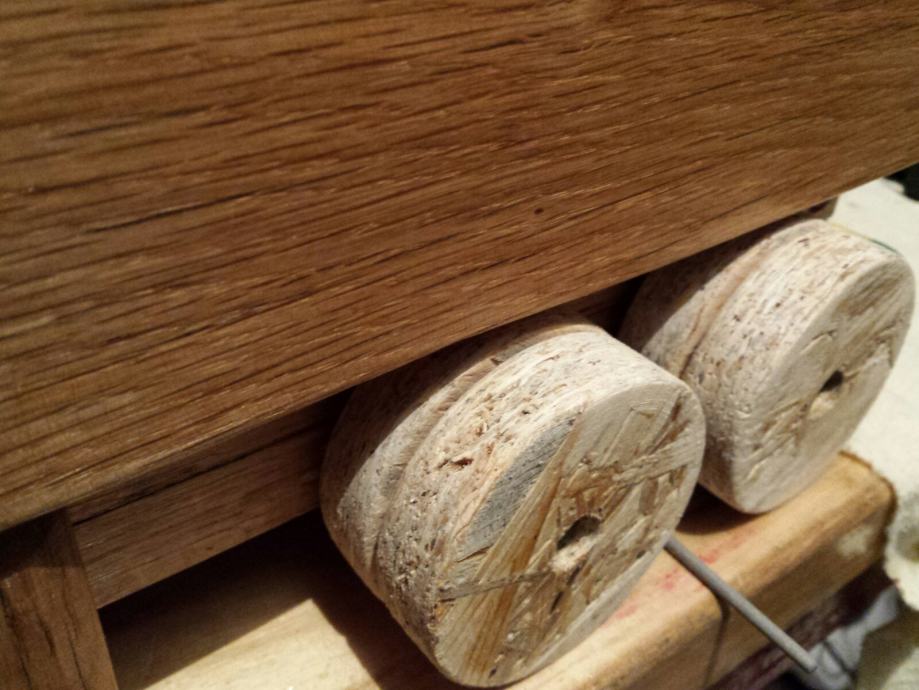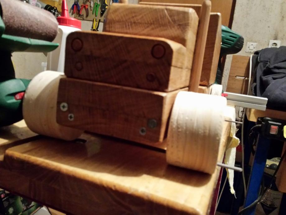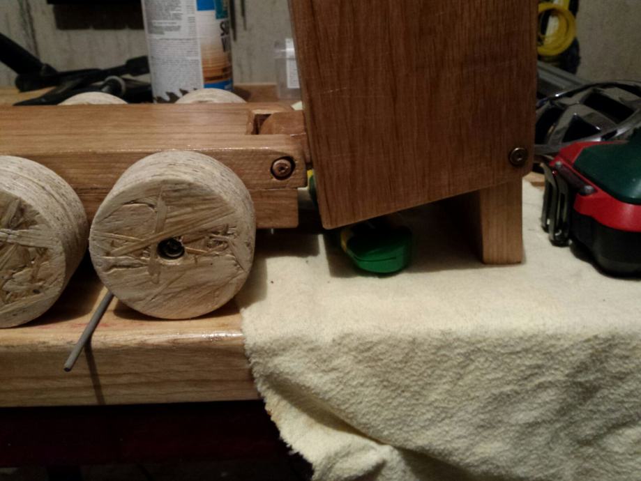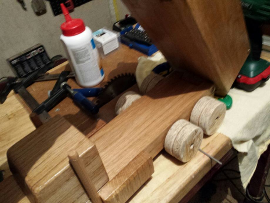 drvena igracka kamion kiper od hrastovine prvi kotaci jelovine a zadnji osb ploce masivan