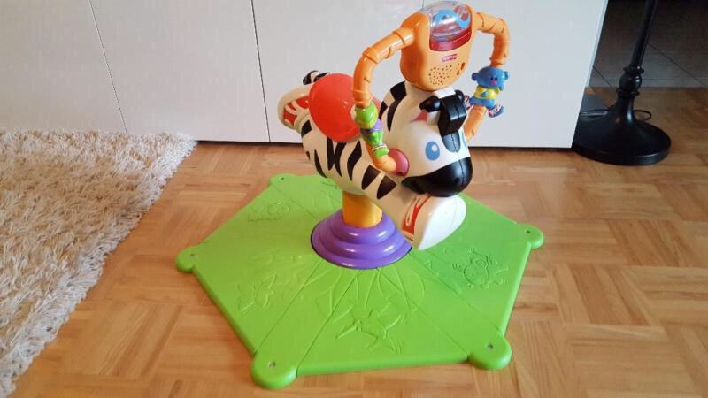 Fisher Price zebra sa zabavnim zvukovima, muzikom, šarenim svjetlima, igračkama na ručkama koje se vrte, zebra se vrti u krug, ide gore dolje, za djecu od 12-36mj.