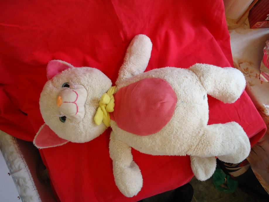 Vide se lagani tragovi igranja sa mačkom, ima par sitnih točkica od kemijske. Oprana je.