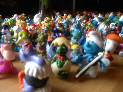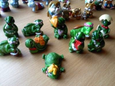 Prodajem igračke iz kinder jaja (krokodili, egipatske mačke, pingvini, lavovi, štrumfovi, kornjače, žabe, pande itd.), oko 160 komada. Stare su otprilike od 10-20 godina.