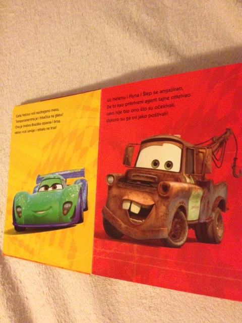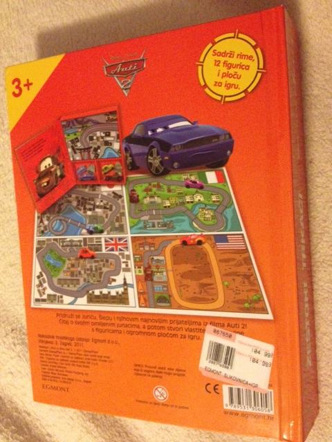 slikovnica u stihovima, 4 podloge za vožnju autića, 12 autića (fali nam 3 kom, ali smo dodali neka druga 3)-sve likovi iz crtića Jurić ili Auti. Knjiga je plaćena 105 kn