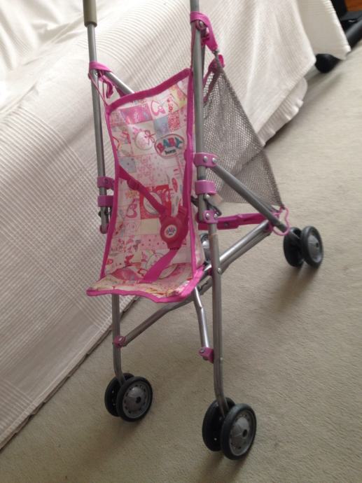 Baby born korištena kolica, ali u jako dobrom stanju. Izrazito čvrsta, lako se sklapaju, metalne konstrukcije sa kotačićima koji se ne troše bez obzira kuda se kolica voze. Straga je mrežica za odlaganje stvari što je curicam kako zanimljivo.