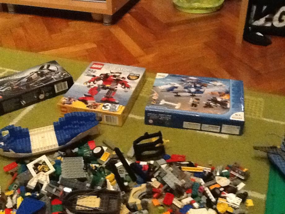 Prodajem veću količinul lego kockica: dvijelovi za aute, avione, dvorce, mnoštvo čovječuljaka, dvije ravne velike lego ploče, 4 lego chima, dvije društvene lego igre i 3 original neraspakirane kutije s legicima kojima se slože auto, veliki robot i helikopter. Sve skupo otprilike 4kg. Prodajemo sve u kompletu, nismo zainteresirani za prodaju pojedinačnih dijelova.