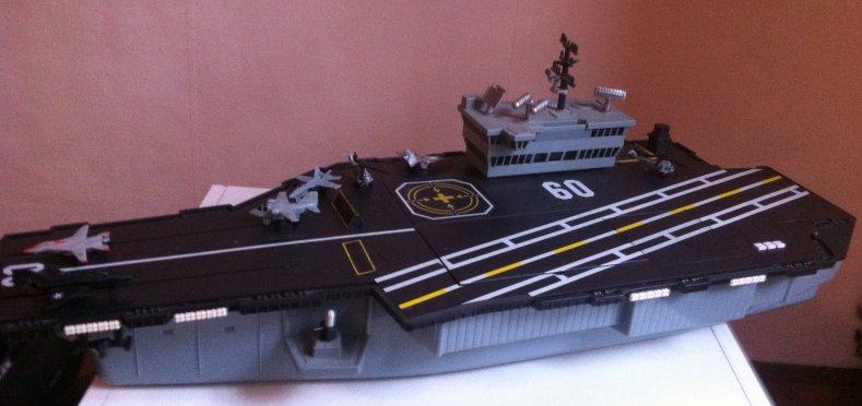 Igračka - nosač aviona na baterije, kreće se, ima zvuk, lansira avione, puno detalja.