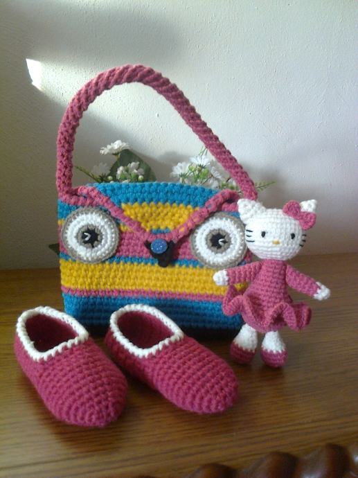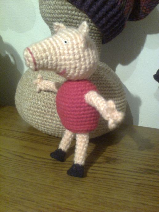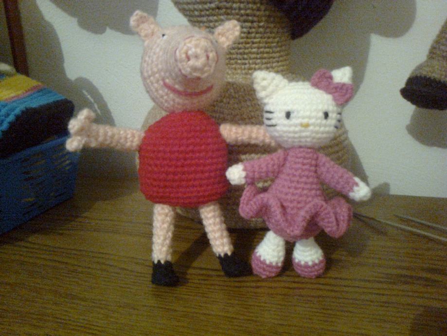 Ručno pletene lutkice Hello Kitty i Pepa Prase.