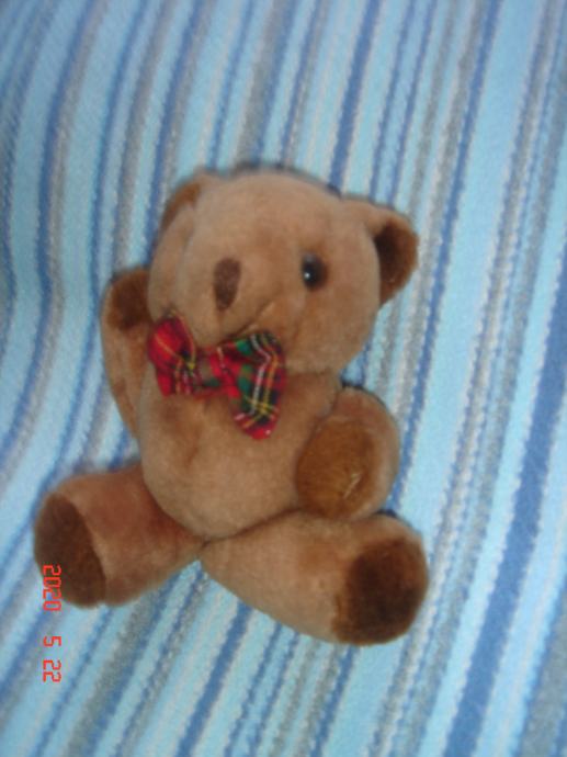 plišani medo iz Engleske 60 -tih, visine 10 cm sa vjerojatno staklenim očima