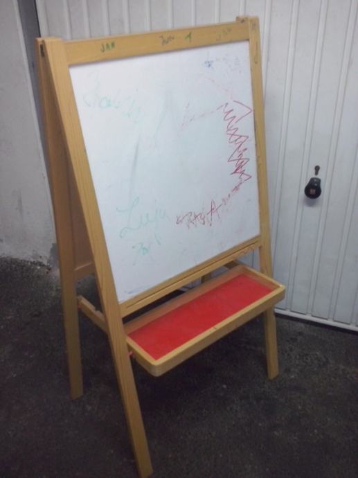 pogodan za vježbanje pisanja i crtanja, flomasterima po jednoj strani a kredom po drugoj