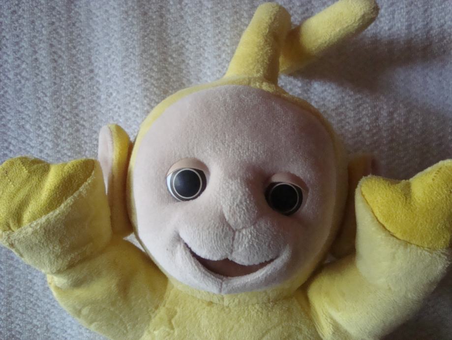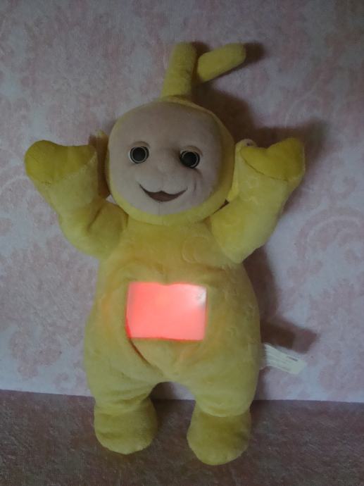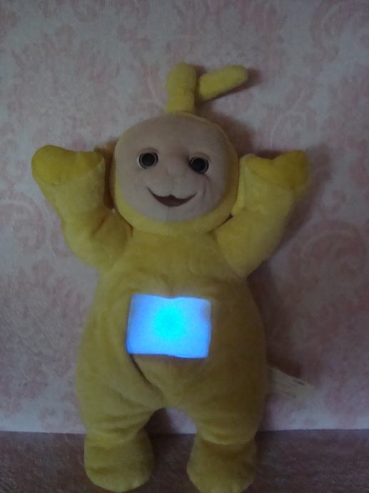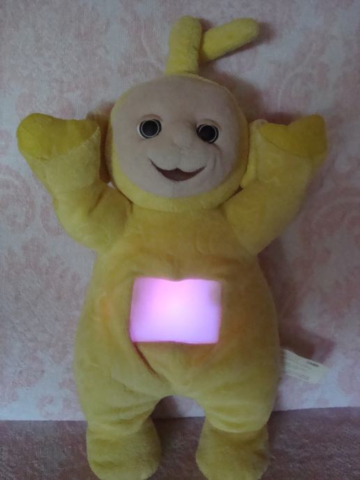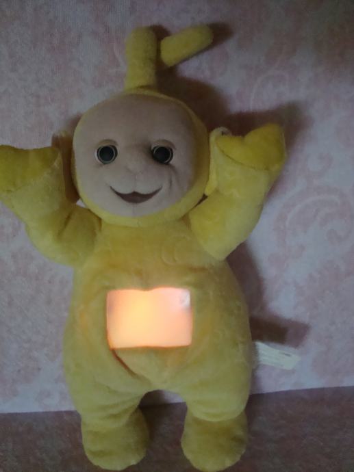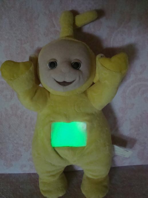3 FUNKCIJE - EKRAN NA TRBUHU MIJENJA BOJE, SMIJE SE KADA JOJ SE PROTRESE GLAVA, MELODIJA TELETABISA KADA SE STISNE GUMBIĆ NA RUCI