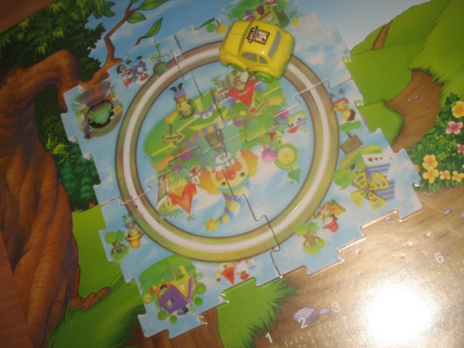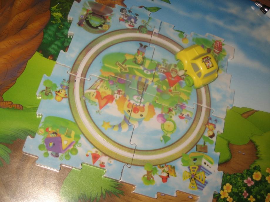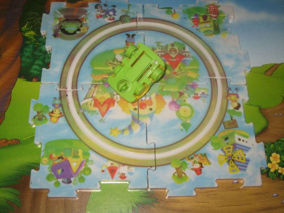 Sastoji se od 4 puzzle koje se spoje i dobije se pista po kojem ide autic.