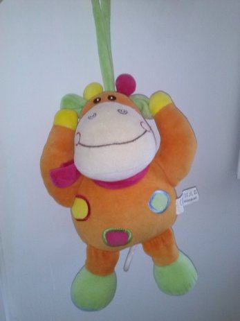 Muzička kravica ima mehanizam za navijanje muzike, ima vrpcu za zavezati na kinderbet -na slici dolje.