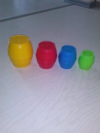 Bačvice (slika dolje) -interaktivna igračka za bebe- bačvice se mogu rastaviti i slagati jedna u drugu ili jedna na drugu, bebama je zanimljivo jer slažu po veličini i boji.