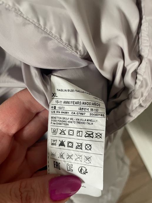Djecja jakna Benetton vel XL (10-11 god), ocuvana. Sive boje. Blago strukirana.