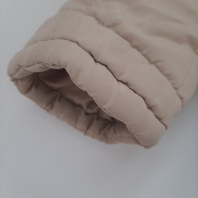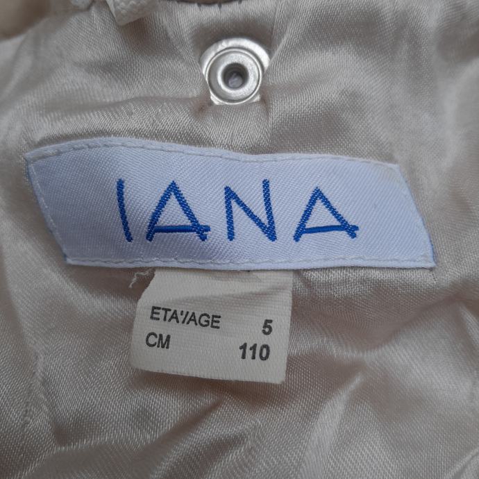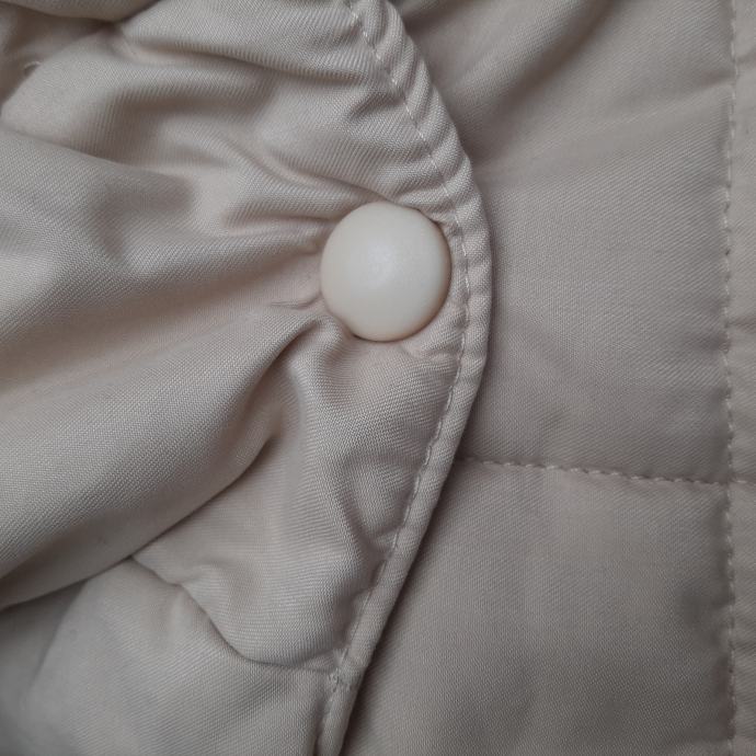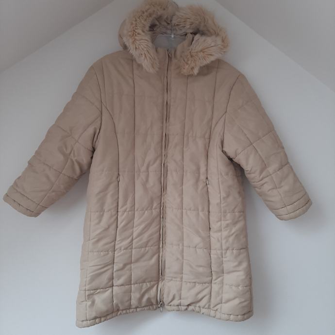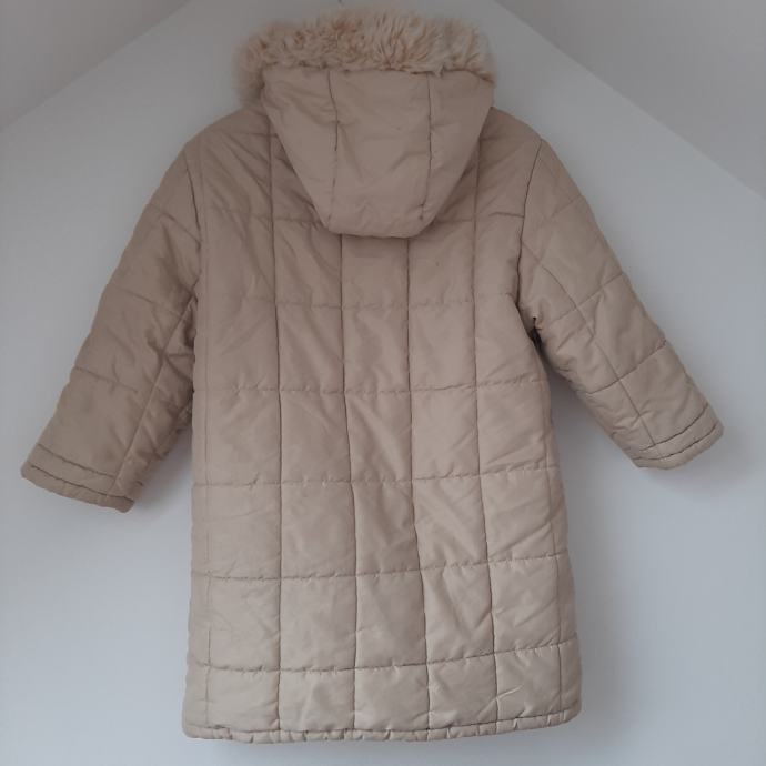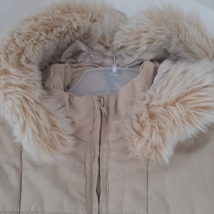 Bež duga zimska jakna 5-8god IANA sa odvojivom kapuljačom koja je obrubljena bež krznom, veličina je 5 ali mi smo je nosili do 8.5god jer je komotna