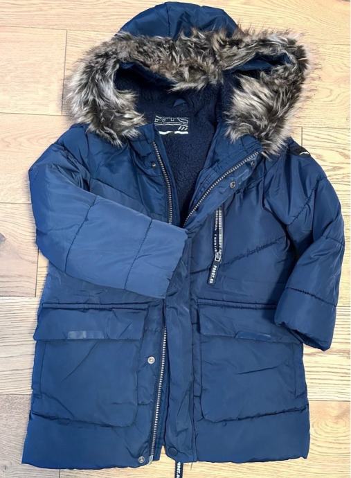 Zimska, topla, debela jakna s kapuljačom vel.116. Nošena jednu zimu. Očuvana.