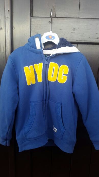Dječja jakna podstavljena i topla sa kapuljačom. Brand Z Generation. Veličina 110. Boja kraljevsko plava sa žutom zakrpom. Jako dobro očuvana, bez flekica i oštećenja.