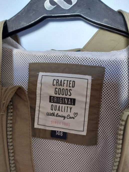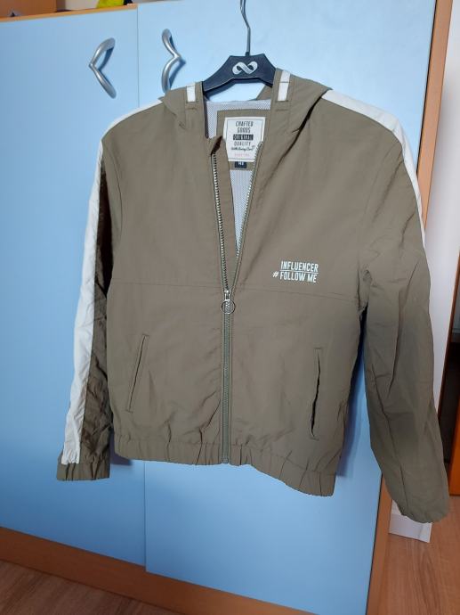 Jakna šuškavac sa mrežastom podstavom, piše vel 146 ali je velika kao 140. Nema oštećenja, nije nošena. Boja sivo zelena.
