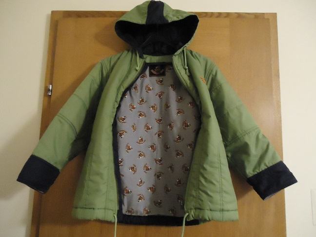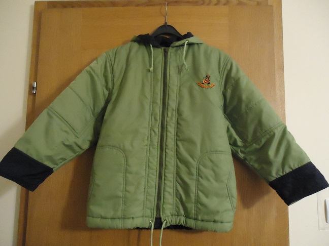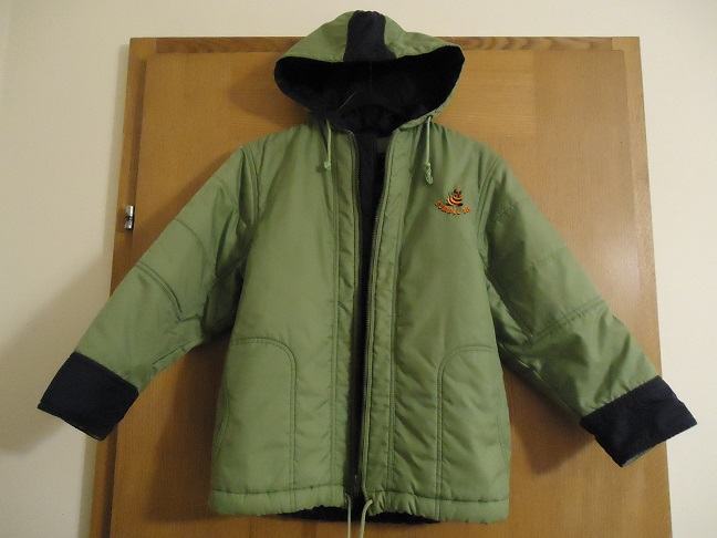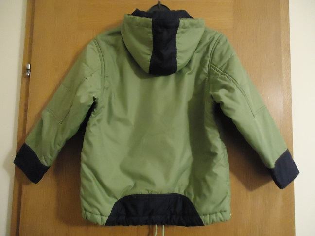 Prodajem dječju zimsko - proljetnu jaknu Bamle bee (Varteks) s kapuljačom veličine 10 (9 do 10 godina). Boja je zelena s tamno plavim. Zatvarač je ispravan. Dužina jakne je 61 cm, širina u ramenima 43 cm. Vanjski materijal je poliamid a unutanja strana je pamuk, između ta dva materijala je sloj punjenja. Kapuljača i donji dio imaju vezice kojima se jakna može stegnuti. S prednje strane 2 džepa. Pranje u perilici.