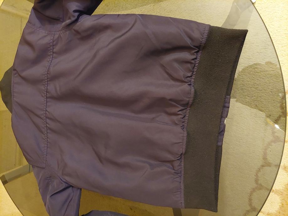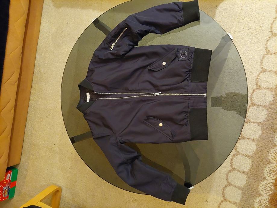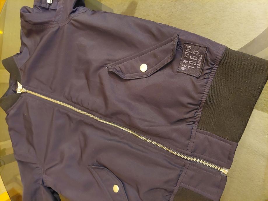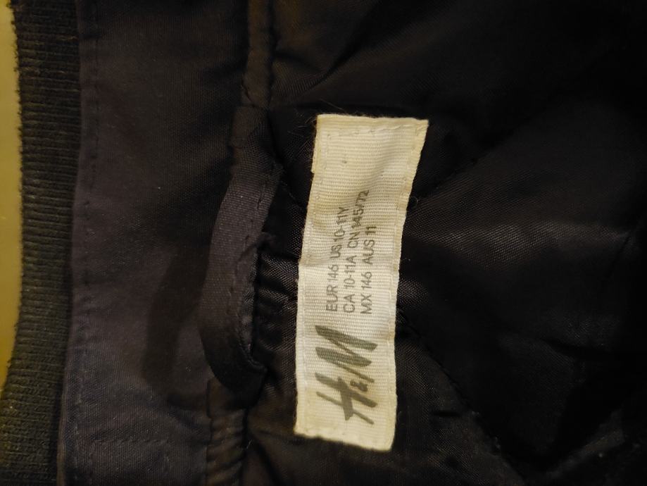 Hm- ova jakna crne boje vrlo lijepa i čvrsta , kao nova bez ikakvih tragova nošenja za dob djeteta od 12-13 god.sve ovisi o građi djeteta.