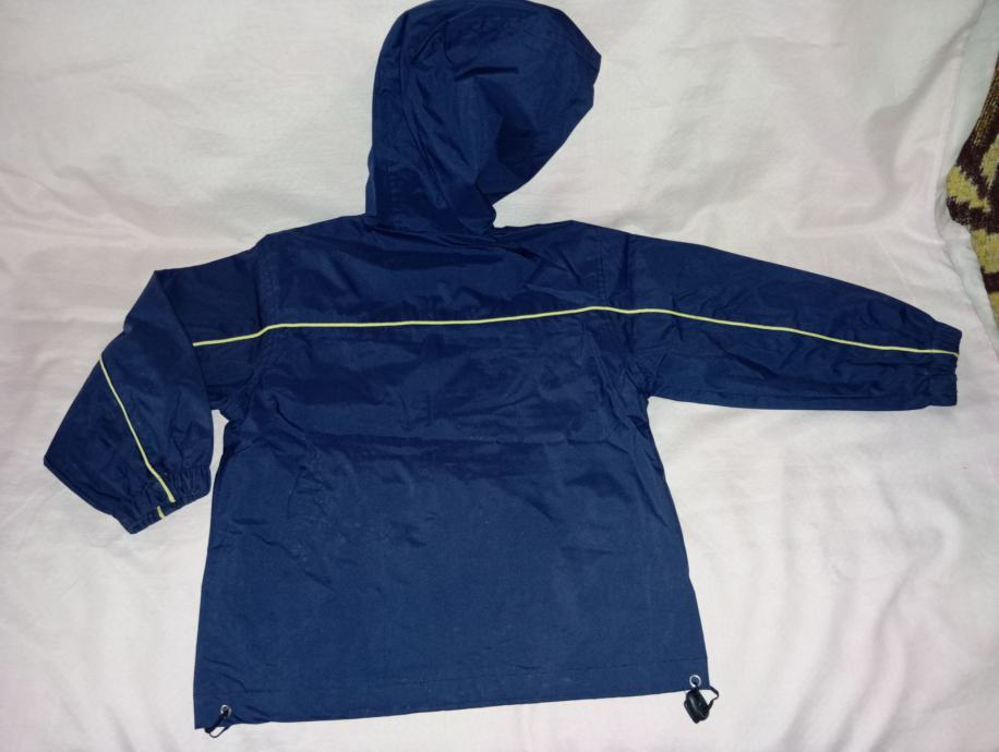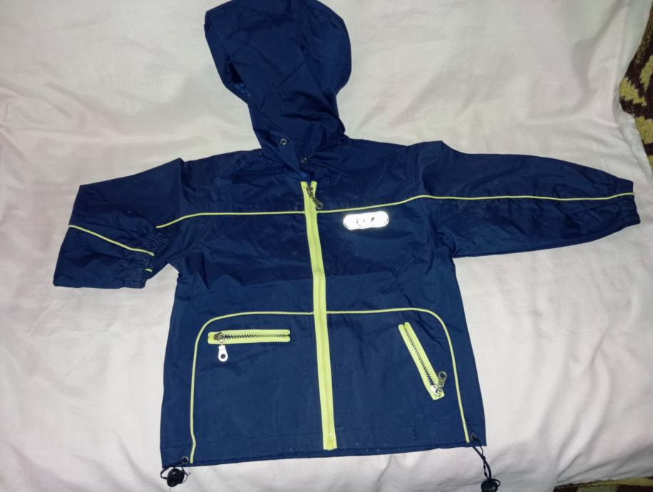 Jakna je šuškava, nepropusna, s kapuljačom.