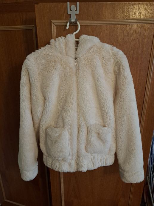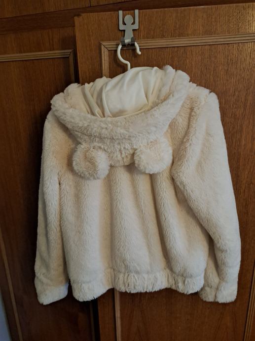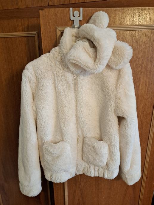 Bijelo umjetno krzno, kapuljaca s usima medvjedica.
