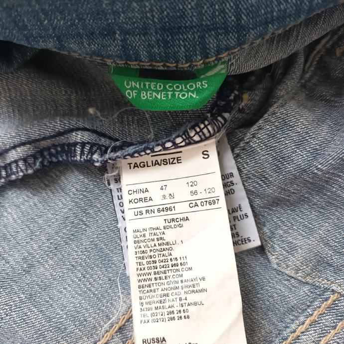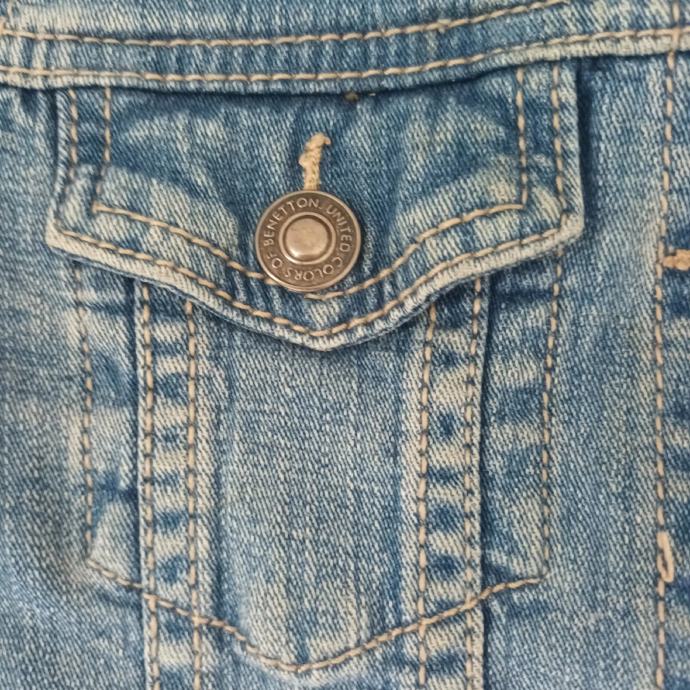 Dječja traper jakna 122 Benetton bez mana kopčanje je na drukere što čini jednostavnije djeci za zakopčavanje i skidanje, mekani traper