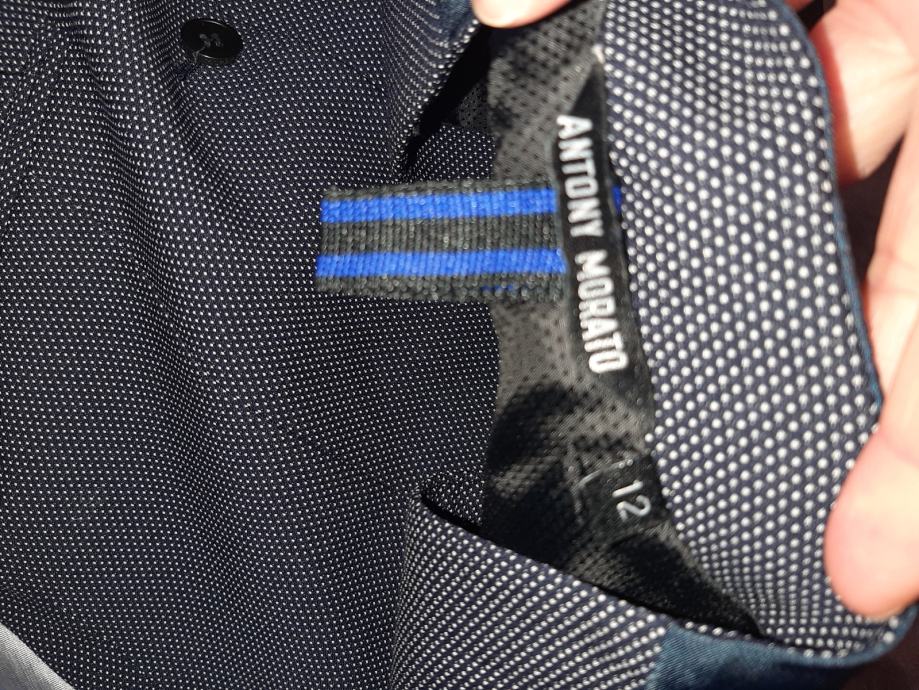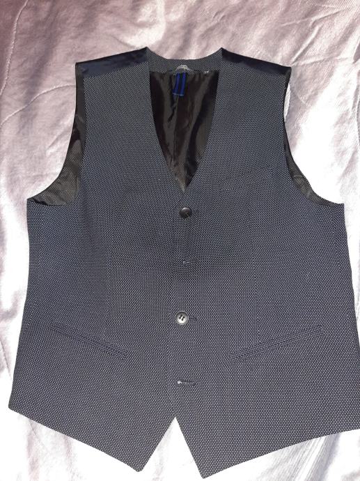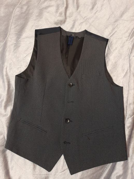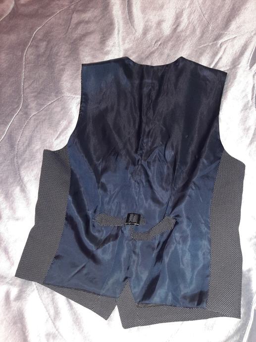 Novi dječji svečani prsluk tamnoplave boje sa sitnim bijelim točkicama. Nošeni svega na sat vremena. Kao novi vel. 146-152 (za 12 god.)