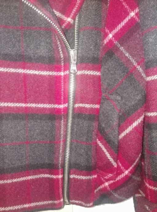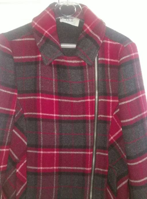 Prodajem kariranu jaknicu, vel. 13/14. Sastav 70%vuna, 30% poliester. Patent zatvarač, kojim se može nositi više otvorena (reveri), ili zatvorena, do vrha kragne. Kupljena u Italiji.