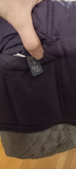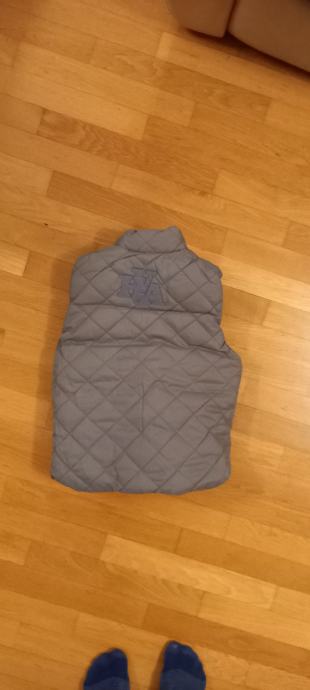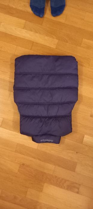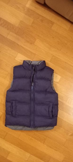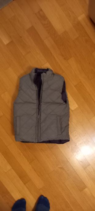 Dječji prsluk, unisex, ljubičaste i sive boje, veličine 122. Može se nositi s obije strane, nema vanjske strane i podstave pa se može izvrnuti na koju god. U odličnom stanju.