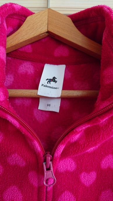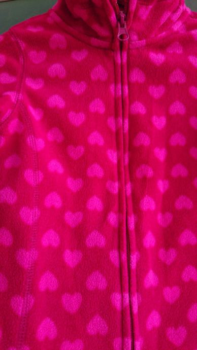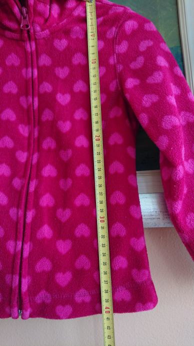Fleece flis majica na kopčanje / jakna za curice br. 98, dužina cca 40cm, marka Palomino, pretežno roze boje s motivom srca, očuvana, topla i jako udobna, paše na sve i lijepo stoji.
