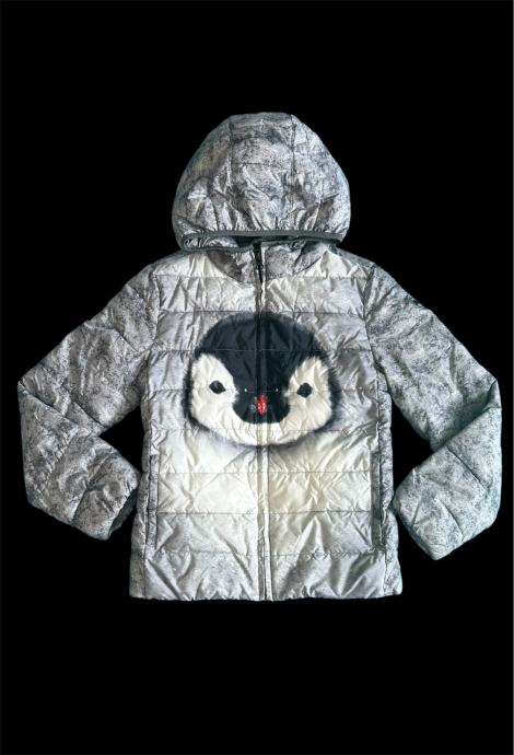 GAP predivna jakna s aplikacijom pinginva s prednje strane, vel.dječji XL12/13 godina, vel.152, kao novo. Obučena par puta, zbilja minimalno jer smo imali bar 6 zimskih jakni. Prelijepa jaknica, imali smo ju u više veličina, predivna u sivim nijansama i aplikacijom pingvina s prednje strane, pingvin je kao iz crtića Ples malog pingvina. Koštala je bliže 90 USD.